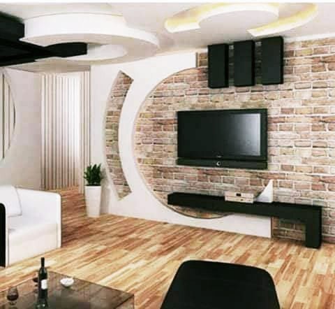 - إضاءة مدمجة: دمج الإضاءة المخفية مع تصميم الجبس بورد يضيف رونقًا إضافيًا ويبرز جمال الشاشة.