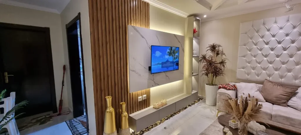 - التناسق: تأكد من أن ديكور التلفزيون يتناسق مع أسلوب الغرفة العام سواء كان عصريًا أو تقليديًا.